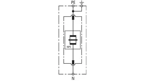 Enpolet, modulær, koordineret N-PE-lynstrømsafleder til UC = 255 V, fås også med fjernmeldekontakt til fjernovervågning (potentialfri skiftekontakt).