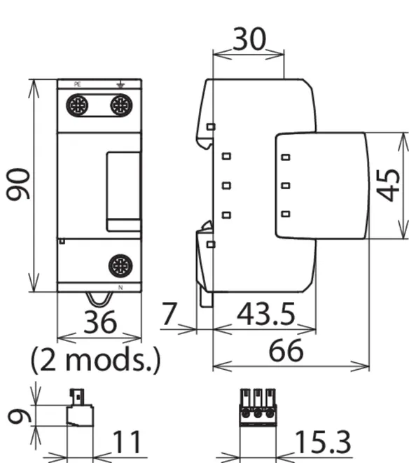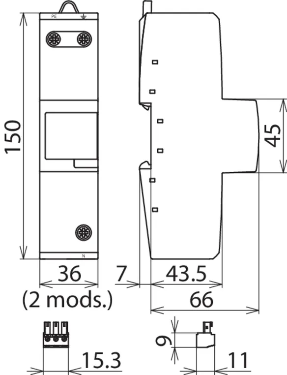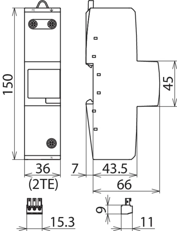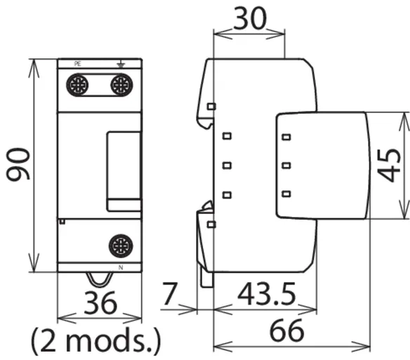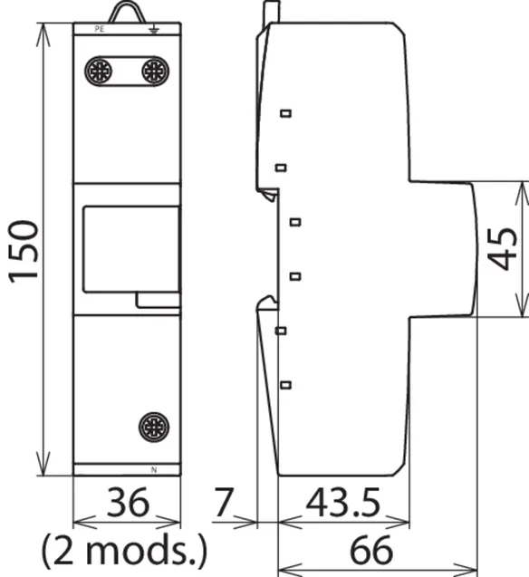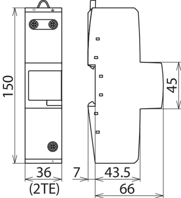 Modulær, 1-polet N-PE-lynstrømsafleder.