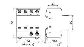 | Lynstødstrøm (10/350 µs) [L1+L2+L3+N-PE] (Itotal ) | 30 kA |