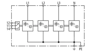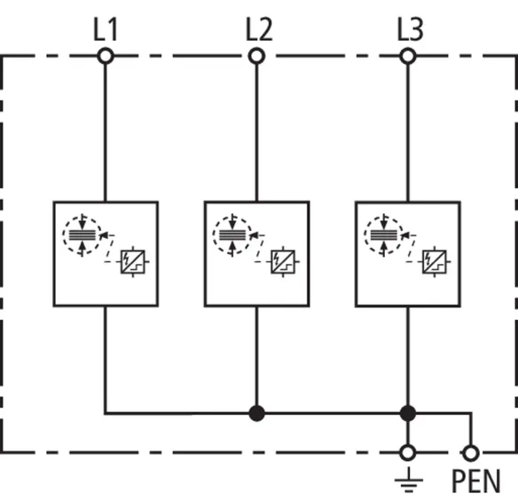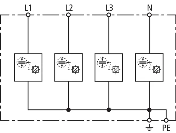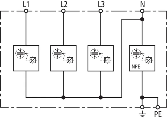 | Lynstødstrøm (10/350 µs) [L1+L2+L3-PEN] (Itotal ) | 22,5 kA |