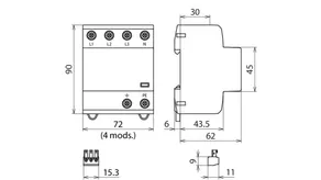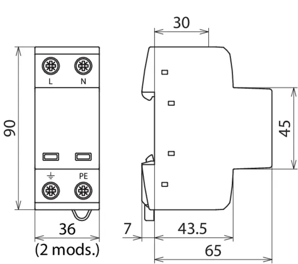 | Lynstødstrøm (10/350 µs) [L-N]/[N-PE] (Iimp ) | 7,5 / 15 kA |