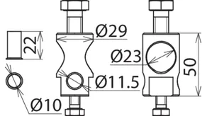 | Tilslutning | 1x B11 mm, 1x B23 mm |
