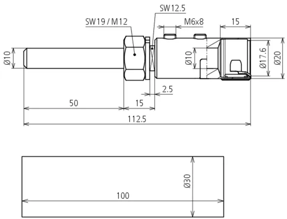 | Tilslutning | Bolt Ø10 mm, L 50 mm |