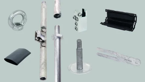 Dybjordelektrode til etablering af enkelte jordelektroder i lynbeskyttelses- og anlægsbyggeri, inkl. tilslutningsklemmer.