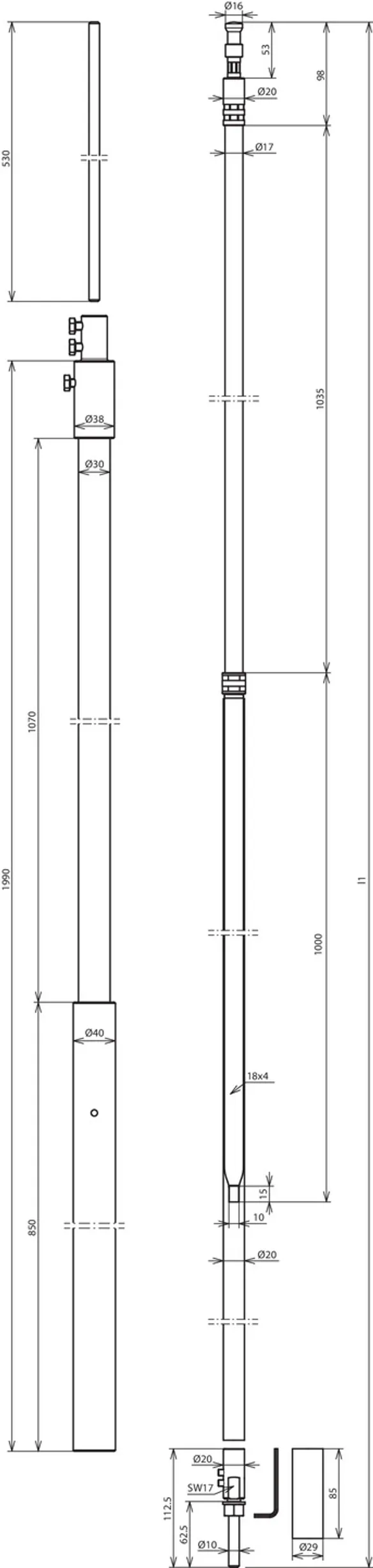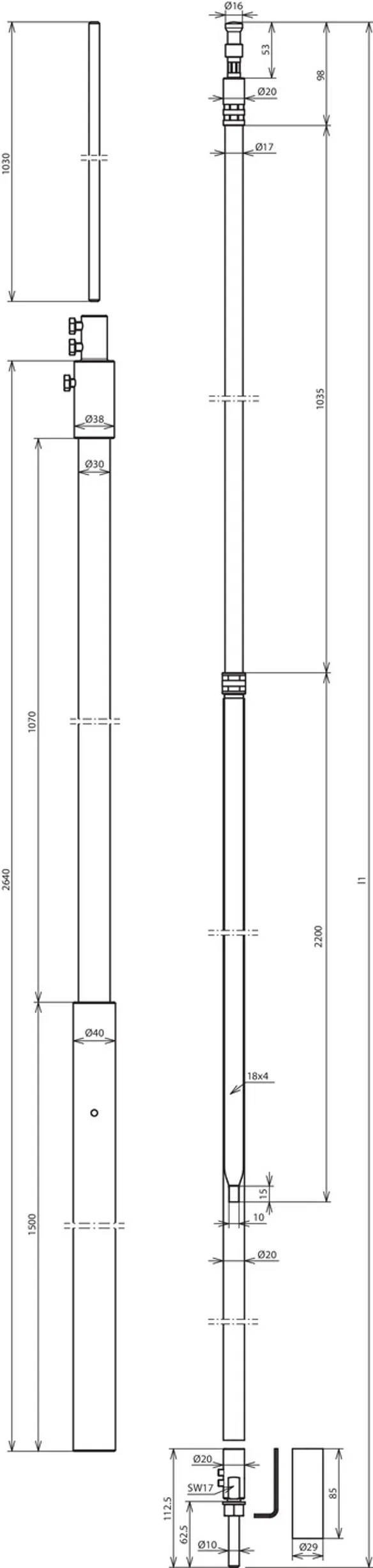 – Støtterør med isoleringsområde af glasfiberforstærket plast (GFK) Ø30 mm