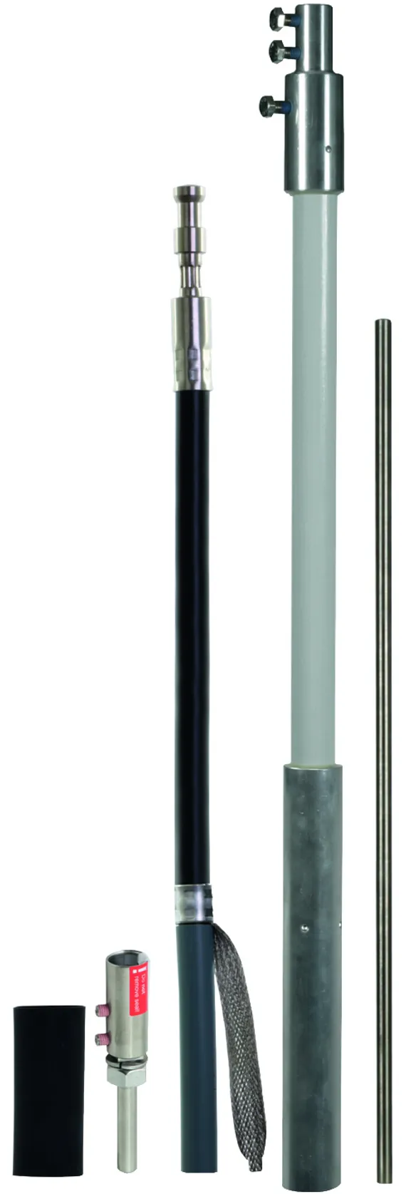 – Den indvendige endeafslutning er ført ud ved bunden af støtterøret med et fleksibelt, rustfrit stålbånd for tilslutningen til potentialudligningen