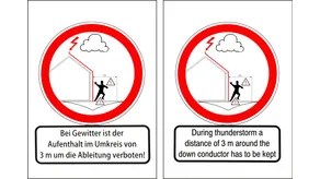 Påbudsskilt skridt- og berøringsspænding Påbudsskilt skridt- og berøringsspænding ved fare for berørings- og skridtspænding for Levende væsner iht. kravene i DIN EN 62305-3 (VDE 0185-305-3) Tosproget udgave (tysk på forsiden/engelsk på bagsiden)