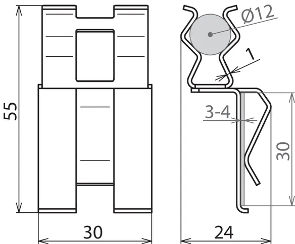 | Klemmeområde (rund* / flad) | 12 / 30 mm |