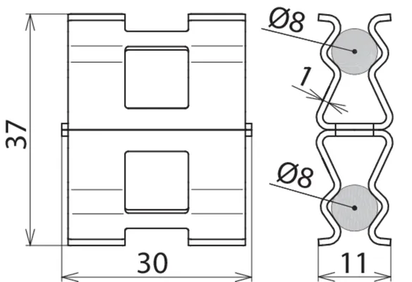 | Klemmeområde (rund* / rund*) | 8-9 / 8-9 mm |