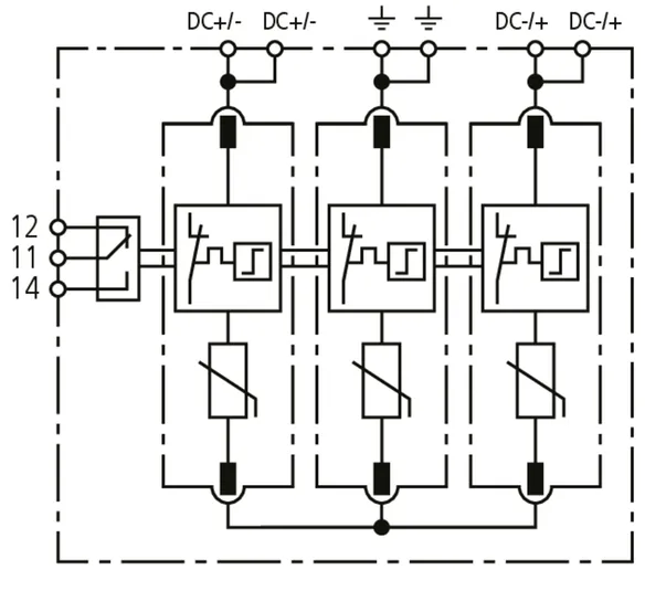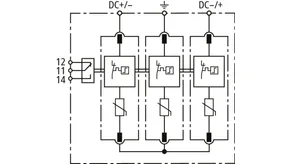 | Mærkeafledestødstrøm (8/20 µs) [(DC+/DC-) --> PE] (In ) | 20 kA |