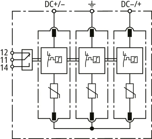 | Max. afledestødstrøm (8/20 µs) [(DC+/DC-) --> PE] (Imax ) | 40 kA |