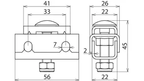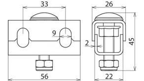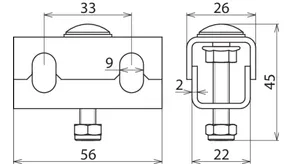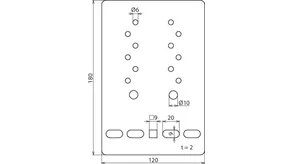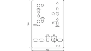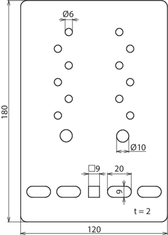 | Fastgørelsesborehuller for trådbakker | [4x] 9 x 20 / [1x] 9 x 9 mm |