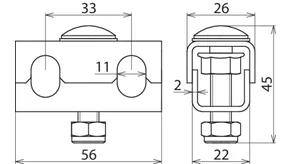 | Tilslutningsborehuller til PA-leder med kabelsko | 3x Ø11 mm, 3x Ø9 mm, trækaflastning 3x kabelklemme M6 |