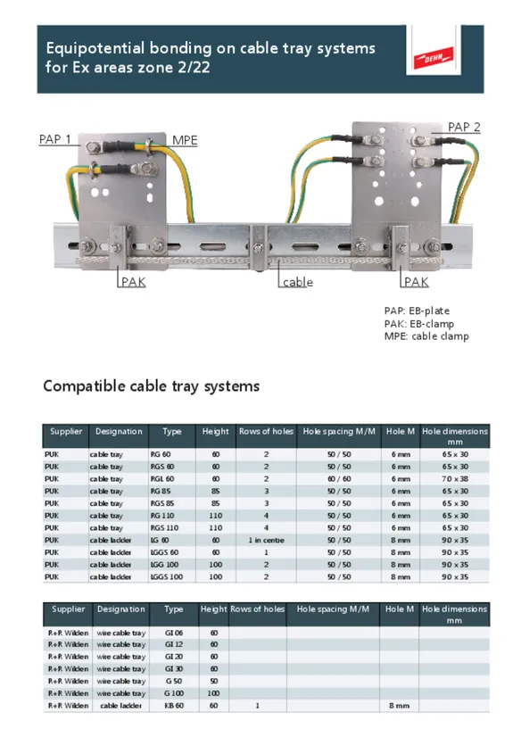 | Tilslutning | PAP 1 EX GI ER eller PAP 2 EX GI ER eller trådbakke |