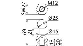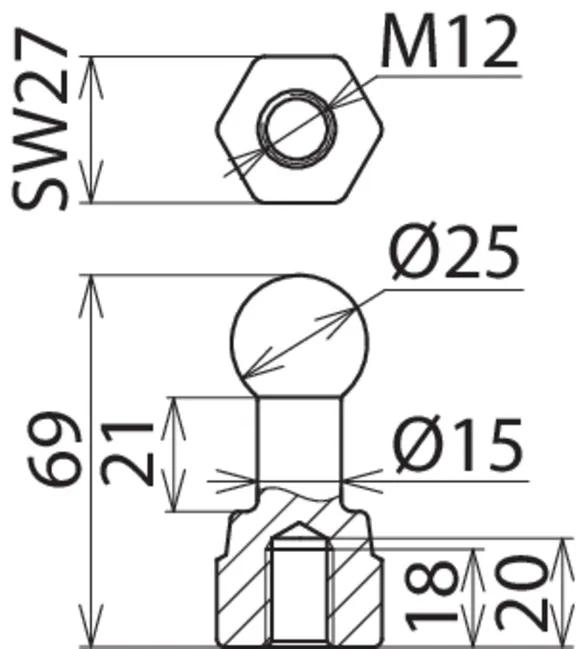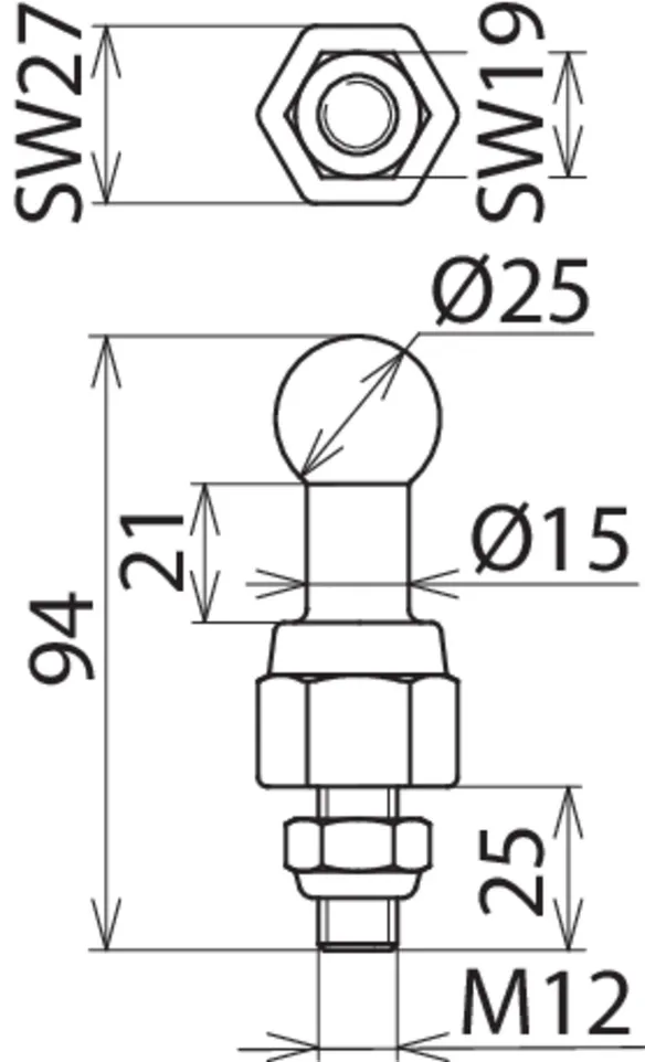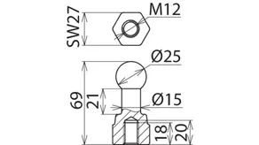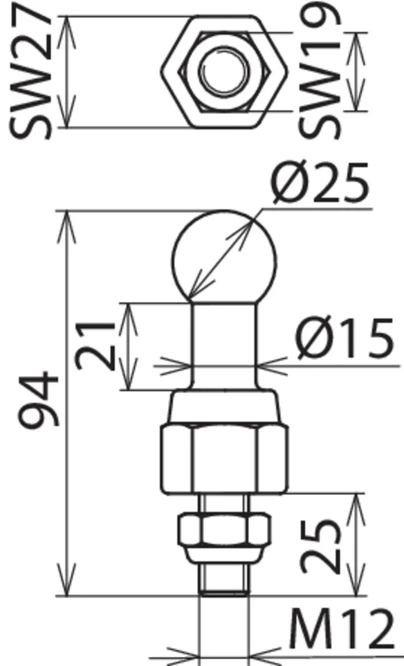 | Dimensioner | M12 x 25 mm |
