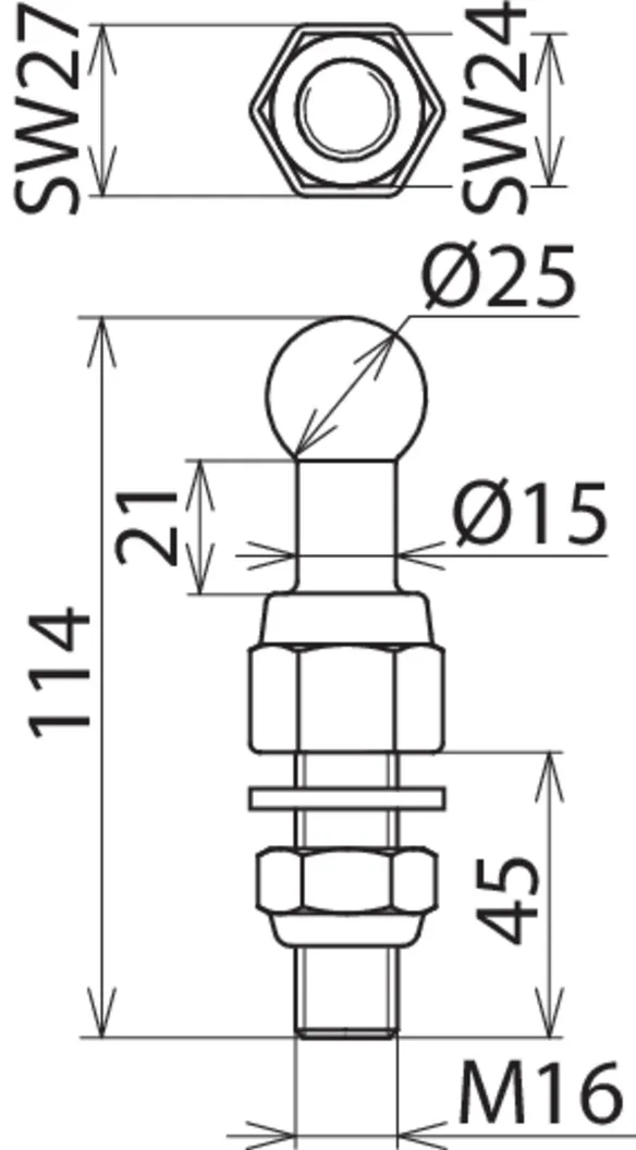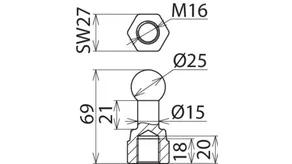 | Dimensioner | M16 x 25 mm |