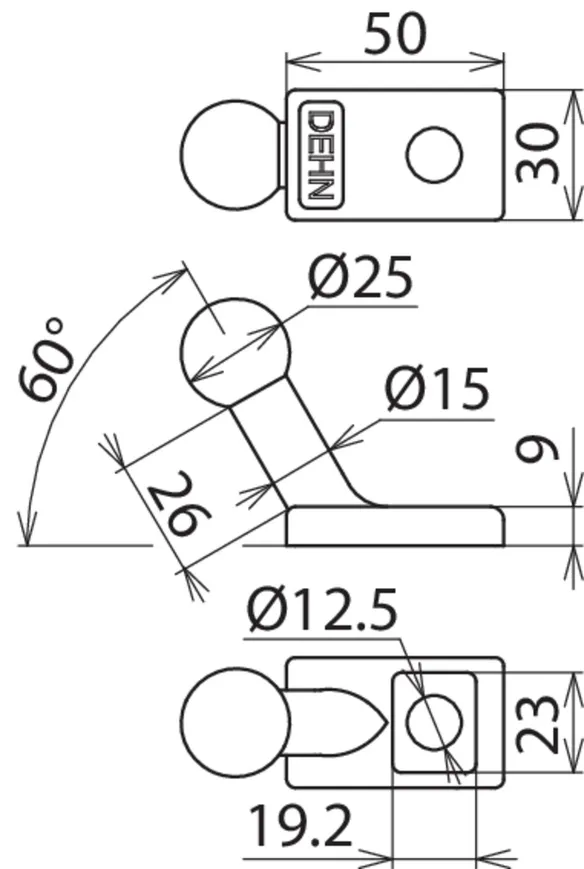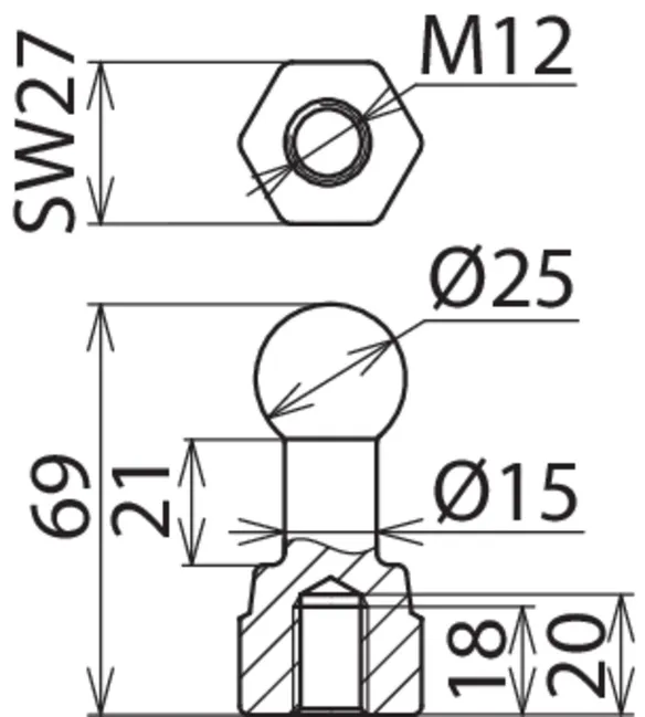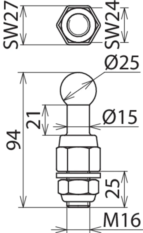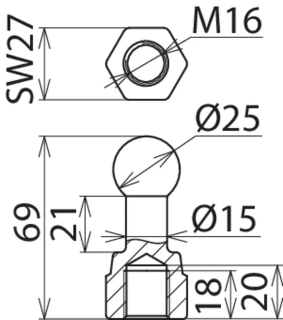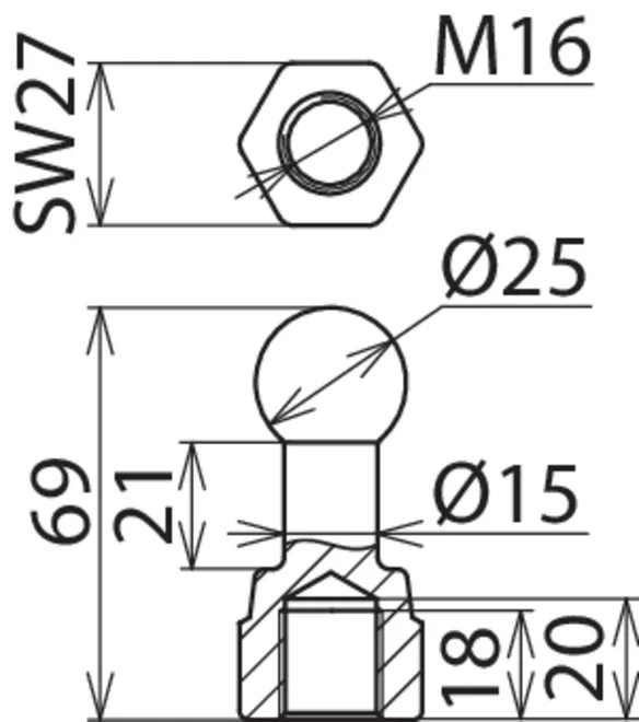 | Kuglehoved Ø | 25 mm |