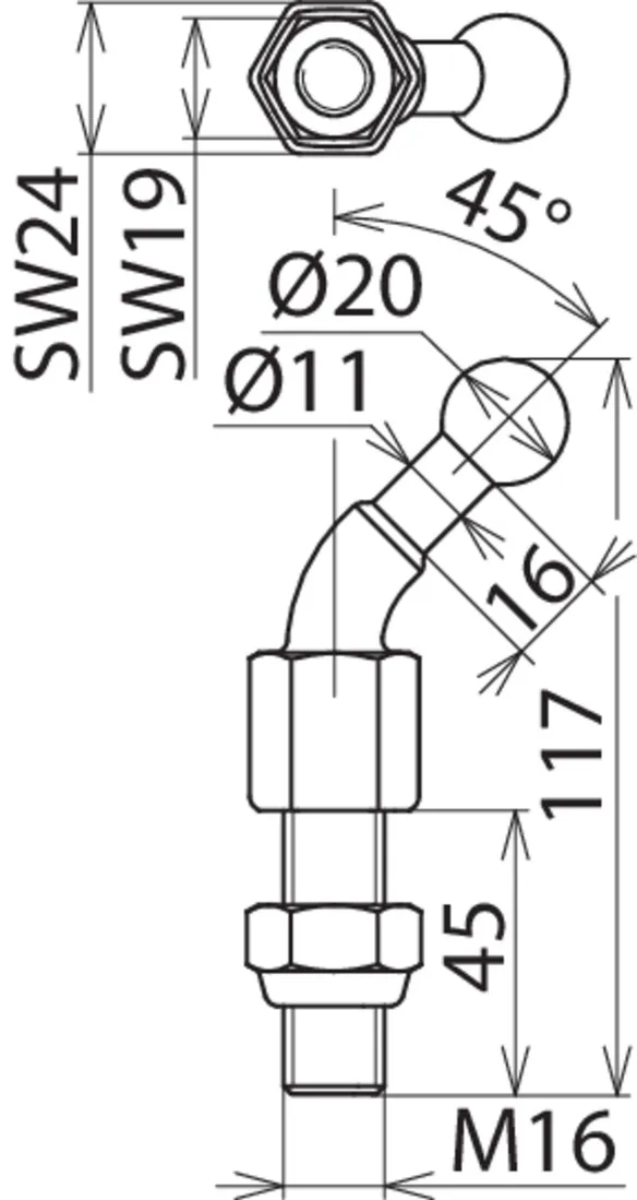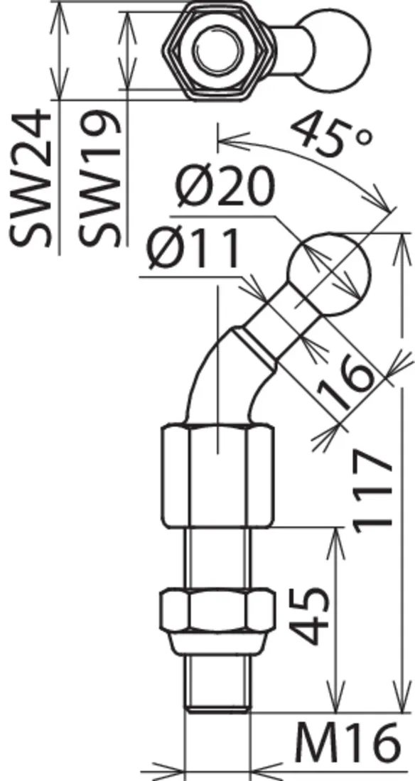 | Dimensioner | M16 x 45 mm |