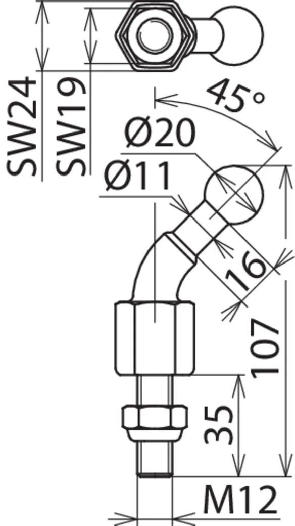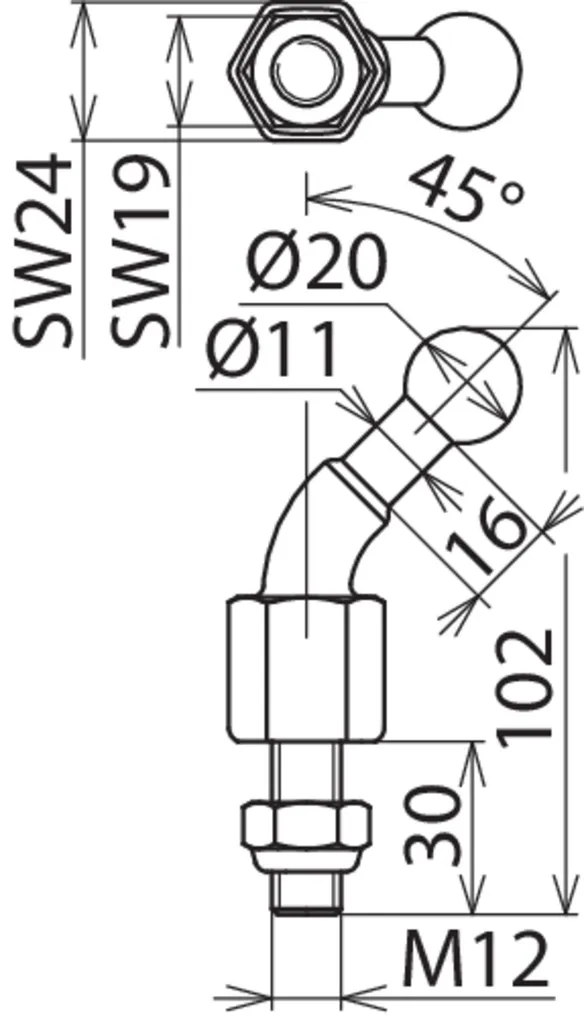 | Dimensioner | M12 x 45 mm |