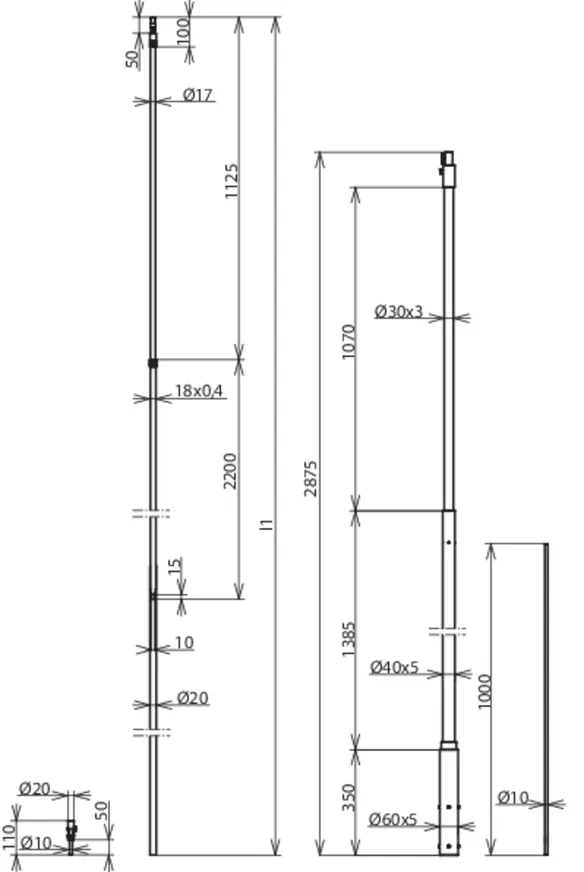 | Længde (støtterør) | 2875 mm |