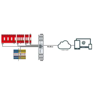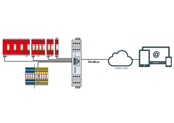 • Kan overvåge op til 4 overspændingsafledere med fjernmeldekontakt og op til 150 BLITZDUCTOR XT-afledere (RS 485)