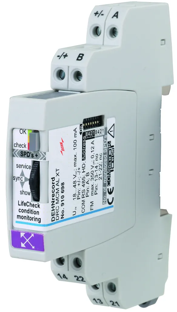 DIN-skinnemonteret udstyr med LifeCheck-sensor DRC MCM XT