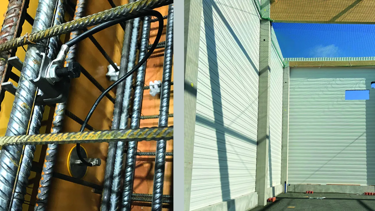 Tilslutnings- og brokoblingsudstyr til benyttelse af armeringsjernene (længdearmeringsjernene) på stålbetonstøtter eller vægge som nedleder. Ved at anvende et armeringsjern, der er indlejret i betonstøtterne, kan den ekstra installation af rundledere (St/tZn) til lynbeskyttelse/jording/potentialudligning undlades. Den elektrisk relevante forbindelse realiseres i hele stålbetonstøttens længde med et lodret armeringsjern.