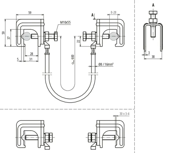Klemmeområde Fl forbindelsesklemme 30 x 3-4 mm