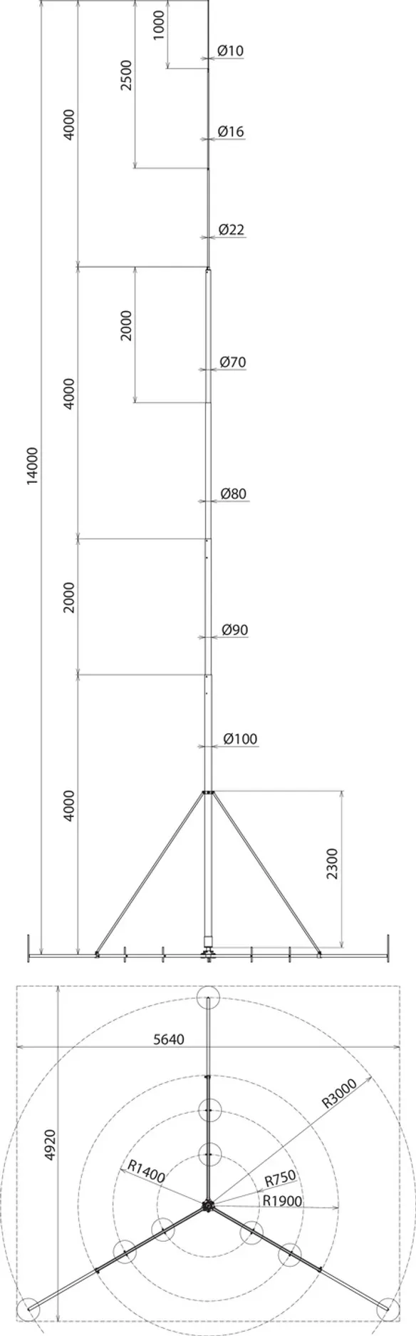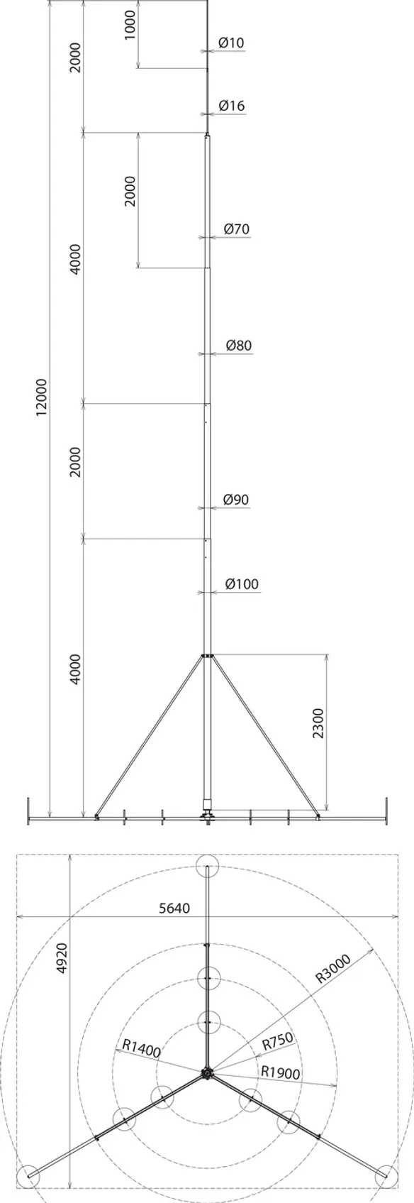 | Nødvendig plads til trefod | 4920 x 5640 mm |