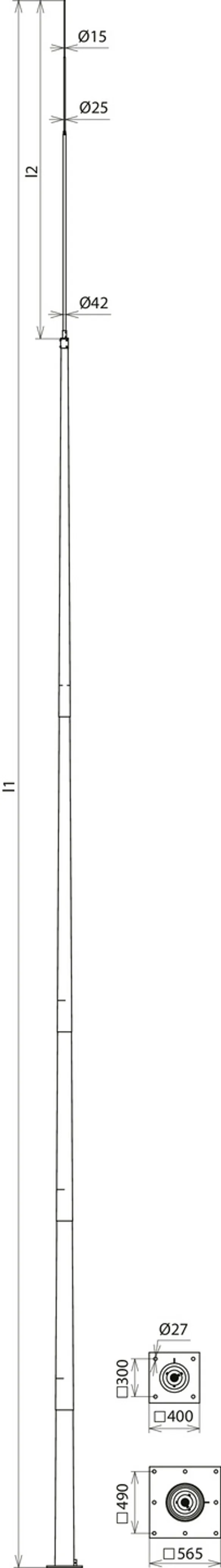 | Udførelse (flangeplade) | 8x Ø27 mm til 8x M24 (490 x 490 mm) |