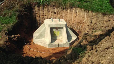 Færdigt fundament til opførelse af teleskop-lynbeskyttelsesmast.