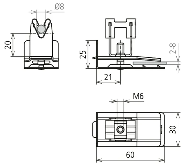 Til fastgørelse mellem flade tegl og plader, med lederholder DEHNsnap, løs lederføring.