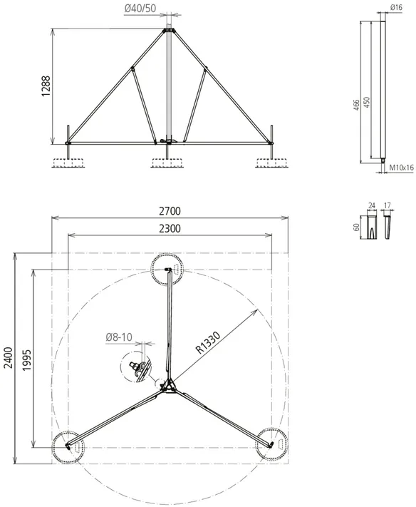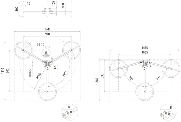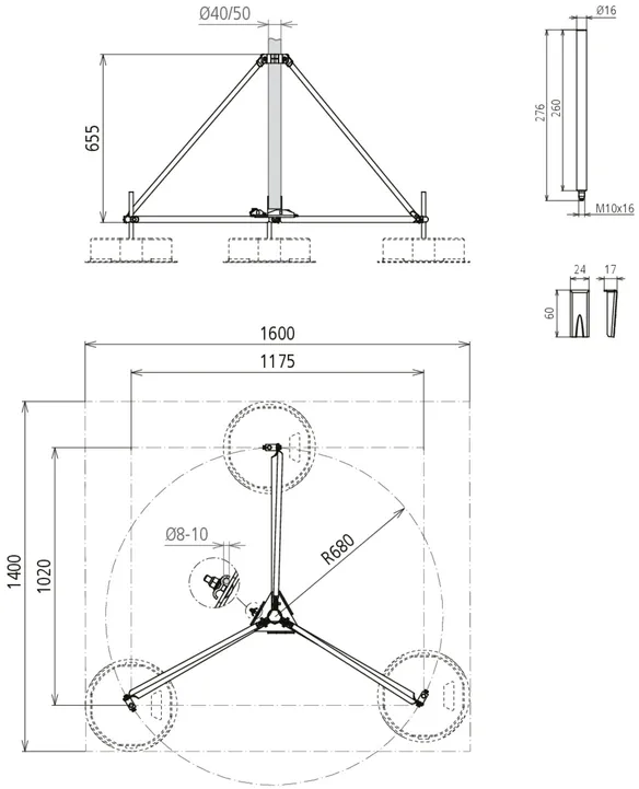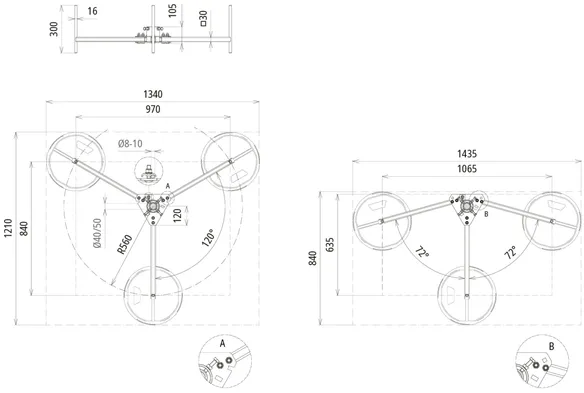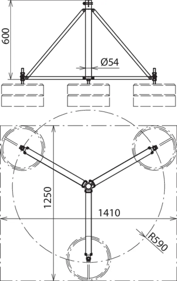 | Nødvendig plads til trefod | 960 x 960 mm |
