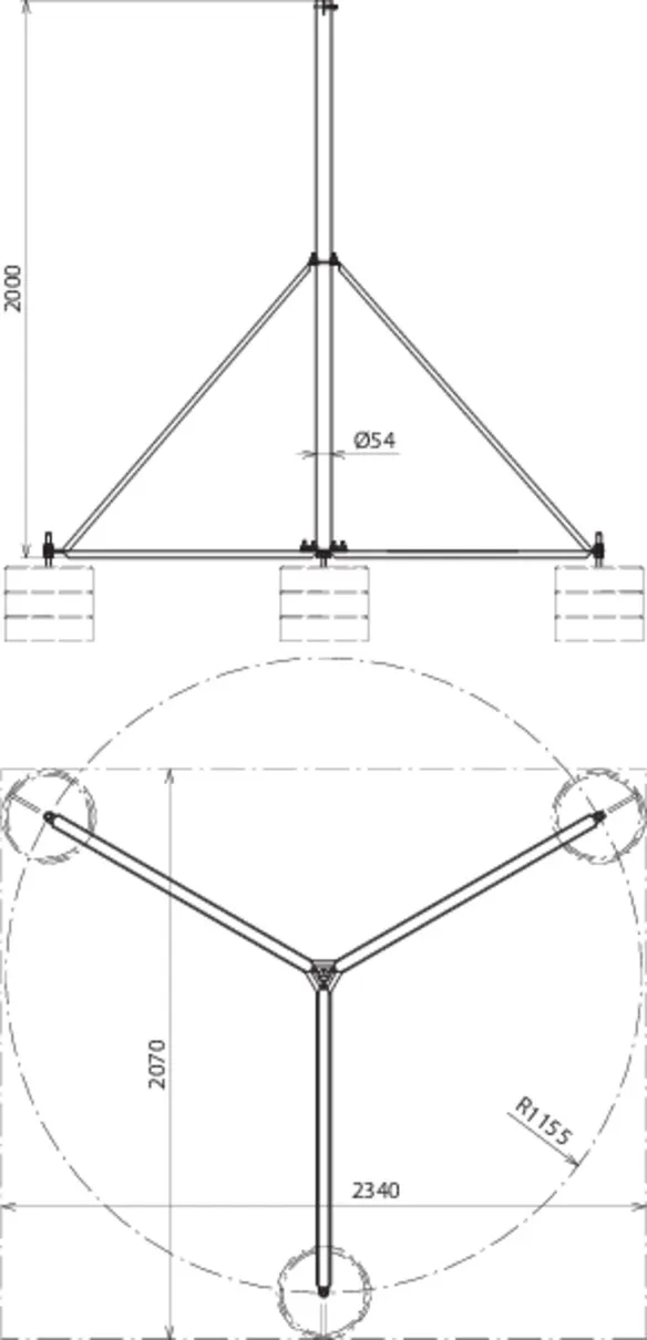| Nødvendig plads til trefod | 2050 x 2300 mm |