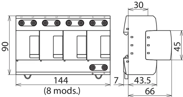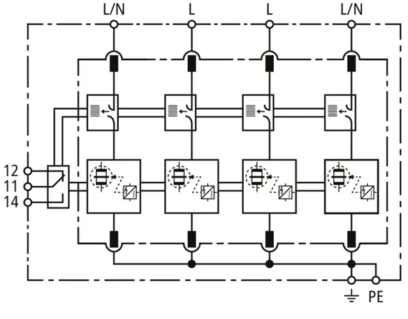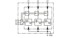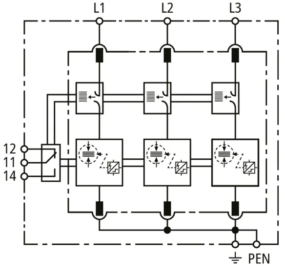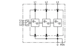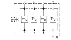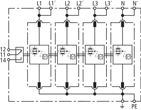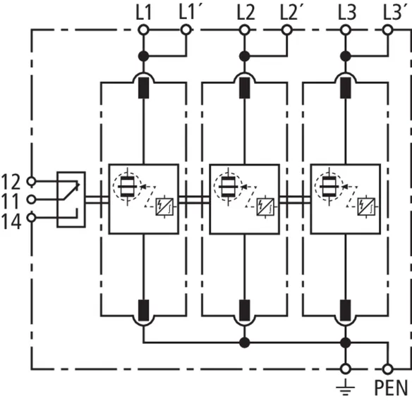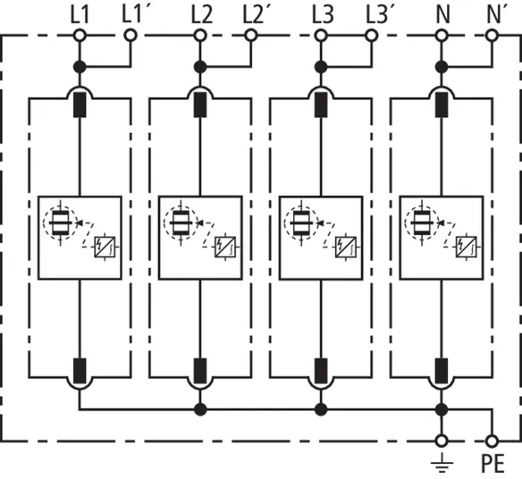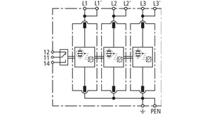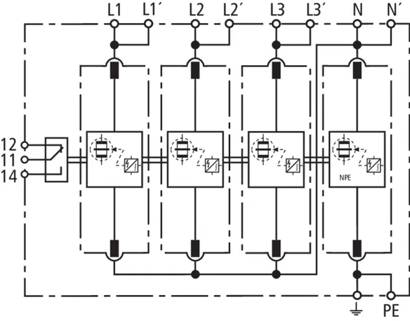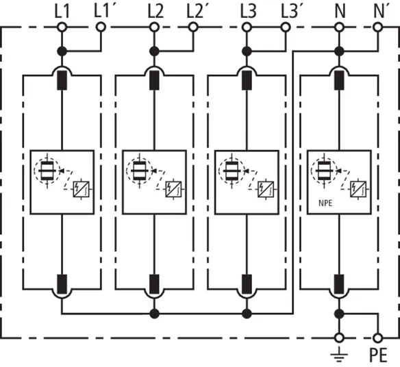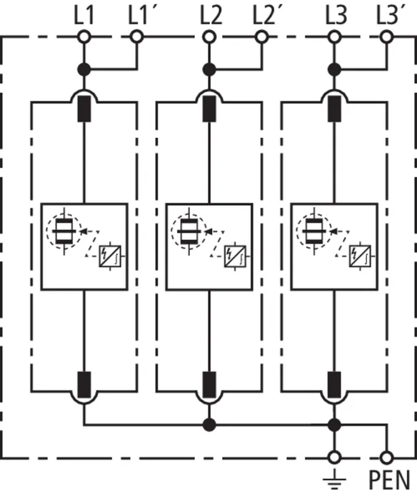 | Lynstødstrøm (10/350 µs) [L1+L2+L3-PEN] (Itotal ) | 75 kA |