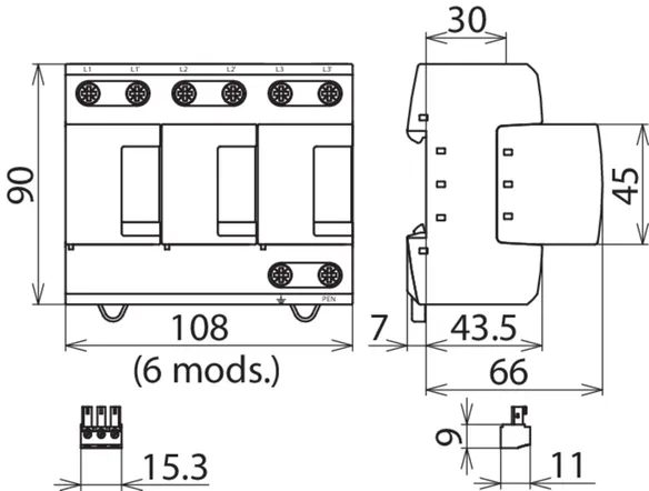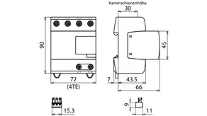 | SPD iht. EN 61643-11 / IEC 61643-11 | Type 1 + Type 2 + Type 3/Klasse I + klasse II + klasse III |