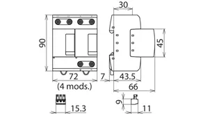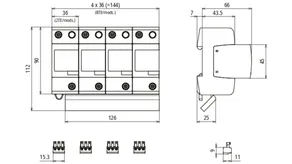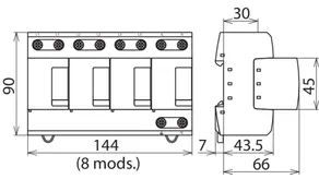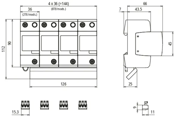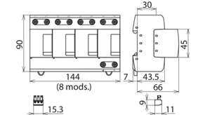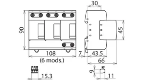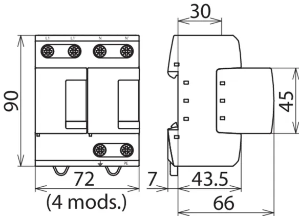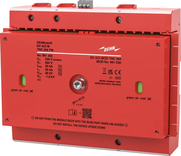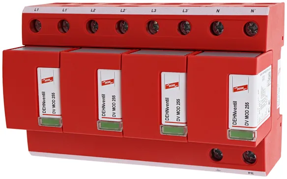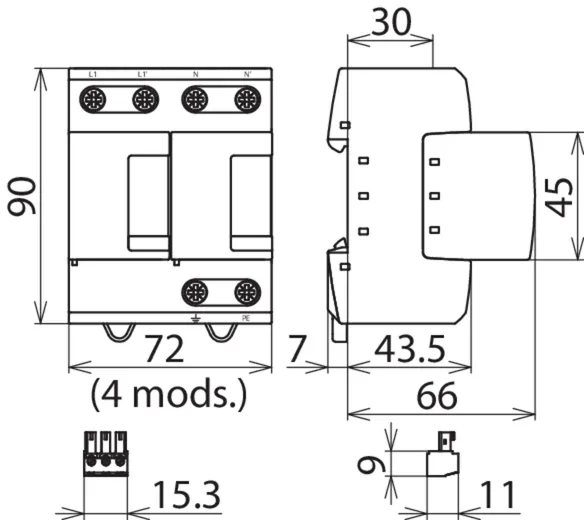 - Komplet, gnistgabsbaseret Type 1 + 2 +3 kombiafleder, bestående af basisdel og ét enkelt stikbart beskyttelsesmodul
