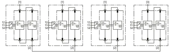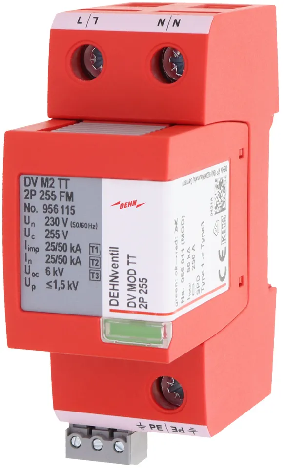 Sæt bestående af stikbare lyn- og overspændingsafledere inklusive isoleret modulledningsføringsskinne til anvendelse i vekselrettersystemer med aktiv Anti-PID med maksimal DC-offset på 750 V DC. Tilslutning af jordingsanlæggene iht. IEC 60364-4-44, tabel 44.A1 - RE- og Z- samt RE- og RA-forbundne.