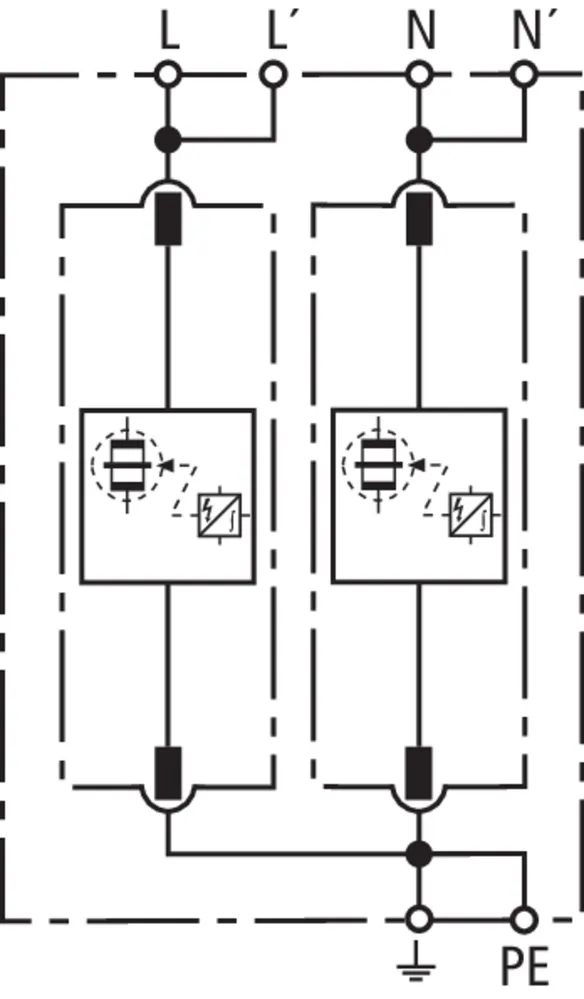 | Lynstødstrøm (10/350 µs) [L-N]/[N-PE] (Iimp ) | 25 / 100 kA |