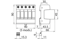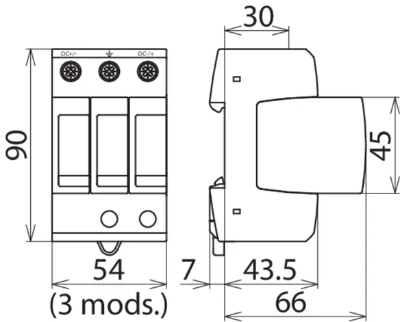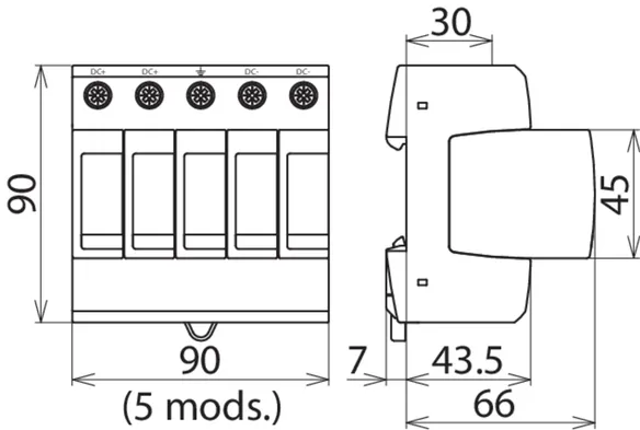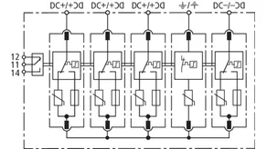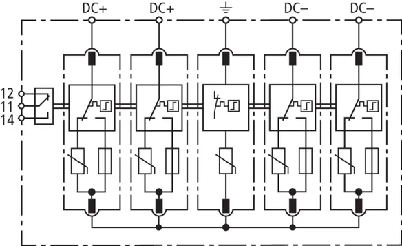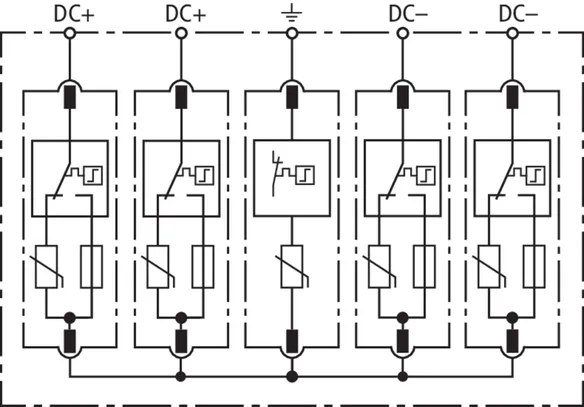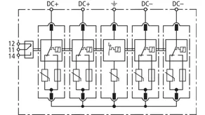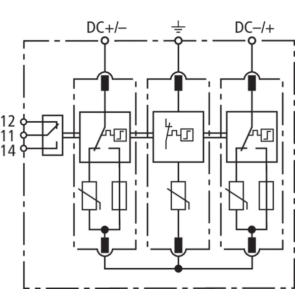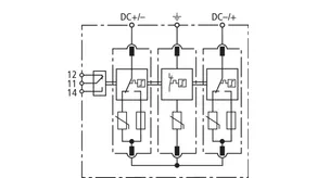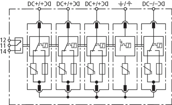 | Max. afledestødstrøm (8/20 µs) [(DC+/DC-) --> PE] (Imax ) | 20 kA |