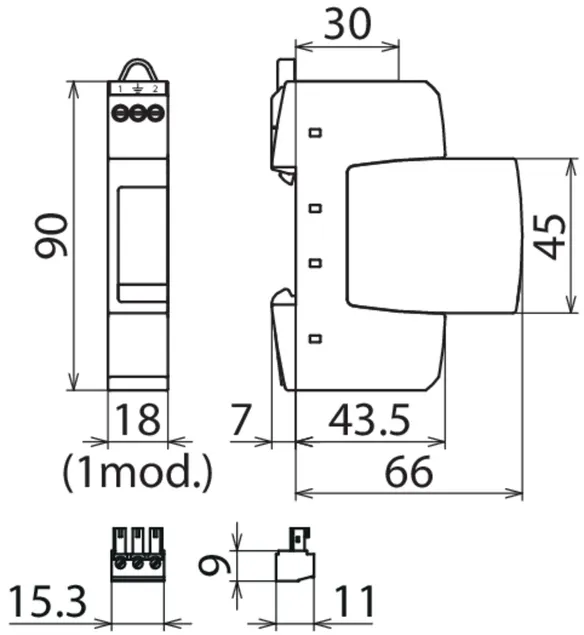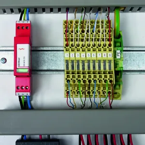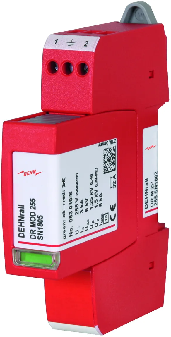 - 2-polet overspændingsafleder bestående af en basisdel og et stikbart beskyttelsesmodul