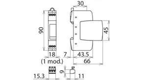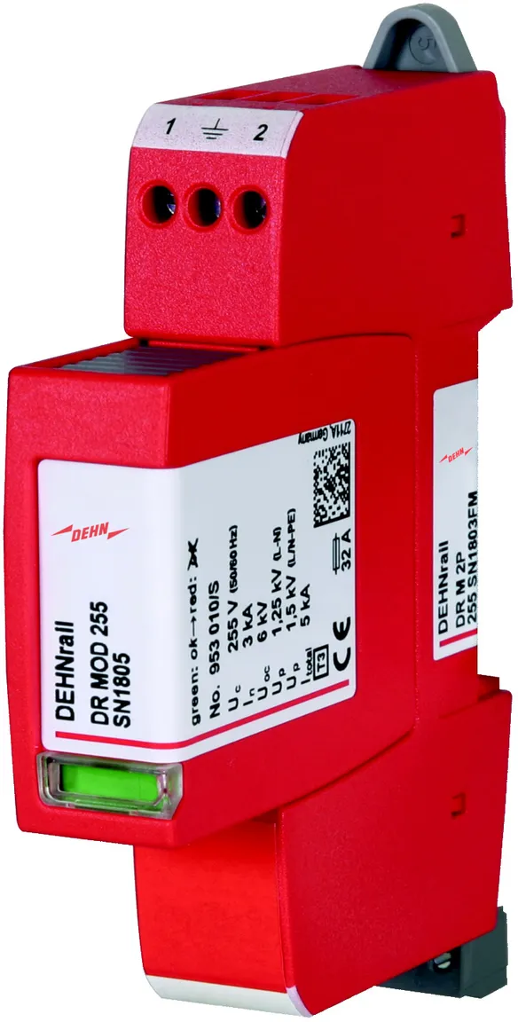 - 2-polet overspændingsafleder bestående af en basisdel og et stikbart beskyttelsesmodul