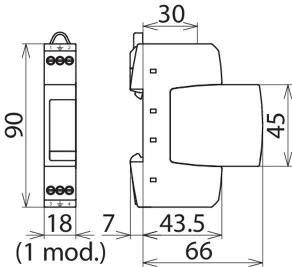 | Samlet afledestødstrøm (8/20 µs) [L+N-PE] (Itotal ) | 4 kA |