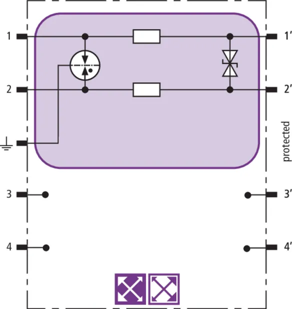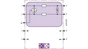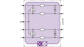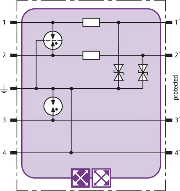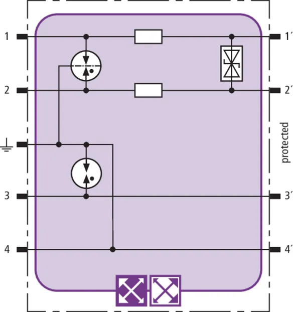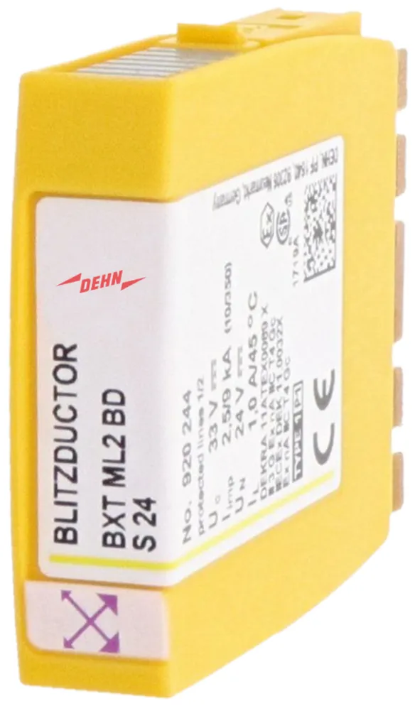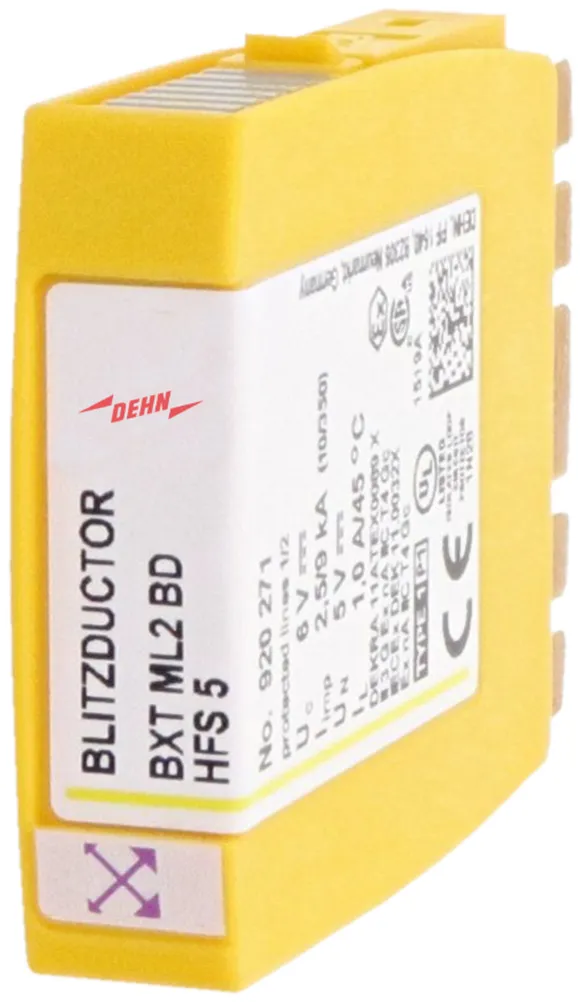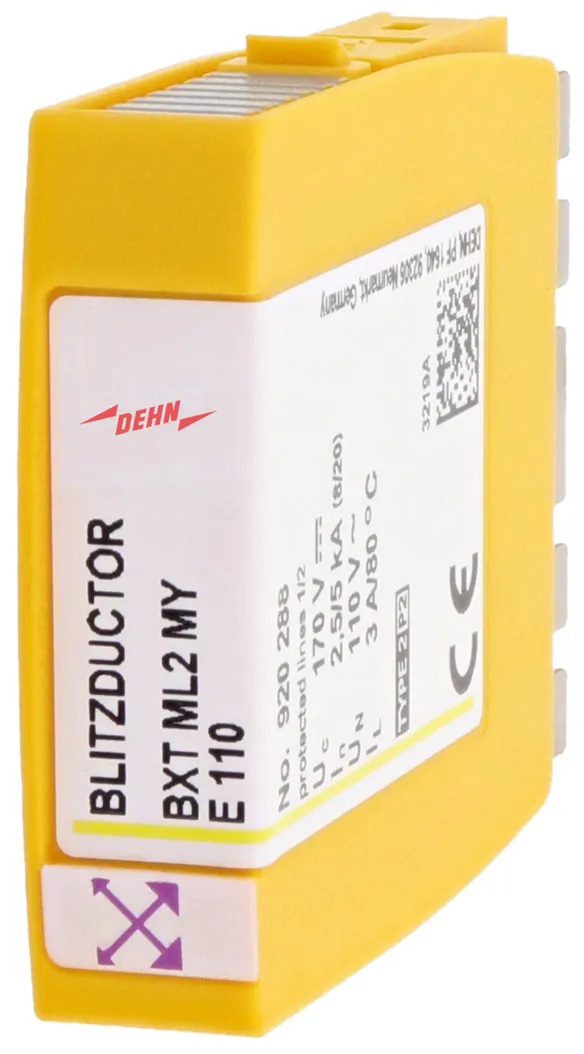 Pladsbesparende beskyttelsesmodul med RFID-LifeCheck til beskyttelse af 1 lederpar i ikke-jordede, symmetriske grænseflader, enten direkte eller indirekte skærmjording. LifeCheck registrerer termiske eller elektriske overbelastningstilstande, hvor aflederen skal udskiftes. Visningen sker berøringsfrit ved hjælp af DEHNrecord LC/SCM/MCM.