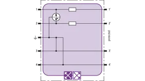 Pladsbesparende kombiafledermodul med RFID-LifeCheck-funktion til beskyttelse af fire enkeltledere med fælles referencepotentiale i højfrekvente signalsystemer uden galvanisk adskillelse. LifeCheck registrerer termisk eller elektrisk overbelastning, hvorefter modulet skal udskiftes. Denne tilstand indikeres berøringsløst af DEHNrecord LC / SCM / MCM-læseren.