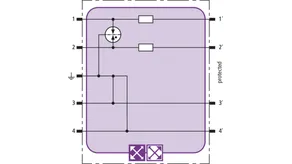 Pladsbesparende beskyttelsesmodul til beskyttelse af 1 lederpar i ikke-jordede, symmetriske grænseflader. Moduler er afstemt efter grænseflader med DC op til 5 A, f.eks. til styring af motordrevne anslag med høj start- og driftsstrøm.