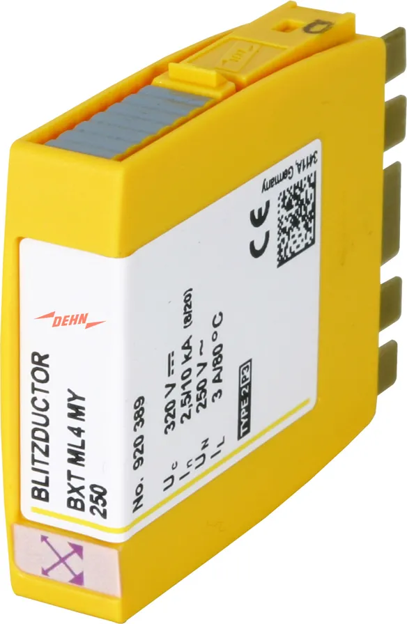 Pladsbesparende, 4-polet lynstrømsafledermodul med RFID-LifeCheck-funktion til næsten alle anvendelser. Til brug i forbindelse med efterfølgende overspændings- Q eller kombiafleder med lavere eller samme spændingniveau. LifeCheck registrerer termisk eller elektrisk overbelastning, hvorefter modulet skal udskiftes. Denne tilstand indikeres berøringsløst af DEHNrecord LC / SCM / MCM-læseren.