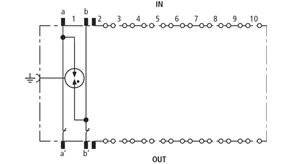 Beskyttelsesstik (et lederpar), energetisk koordinerbar med DRL-stikmagasin til brug som 1-faset beskyttelse af tilsluttet udstyr med afkoblingsimpedans. Særligt egnet til signalkredse med fælles referencepotentiale. Jording via EF 10 DRL. Kun til skillelister eller DRL-stikmagasiner.