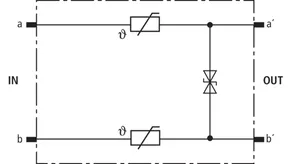Beskyttelsesstik (et lederpar), energetisk koordinerbar med DRL-stikmagasin til brug som 1-faset beskyttelse af tilsluttet udstyr med højfrekvente transmissioner som G.703 eller ISDN U2m, S2m og S0. Til montage i EF 10 DRL. Det anbefales kun at installere stikket i kombination med DRL-stikmagasin.