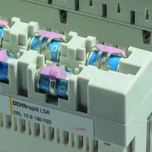 Lynstrømsbærende DRL-stikmagasin til 10 lederpar til næsten alle anvendelser. Kan udvides til en kombiafleder ved hjælp af et DRL-beskyttelsesstik. Den indbyggede skillelistekontakt muliggør afprøvning, adskillelse og patchning uden at fjerne beskyttelsen. Det 3-polede gasgnistgab har "fail-safe"-funktion med visuel fejlindikation.